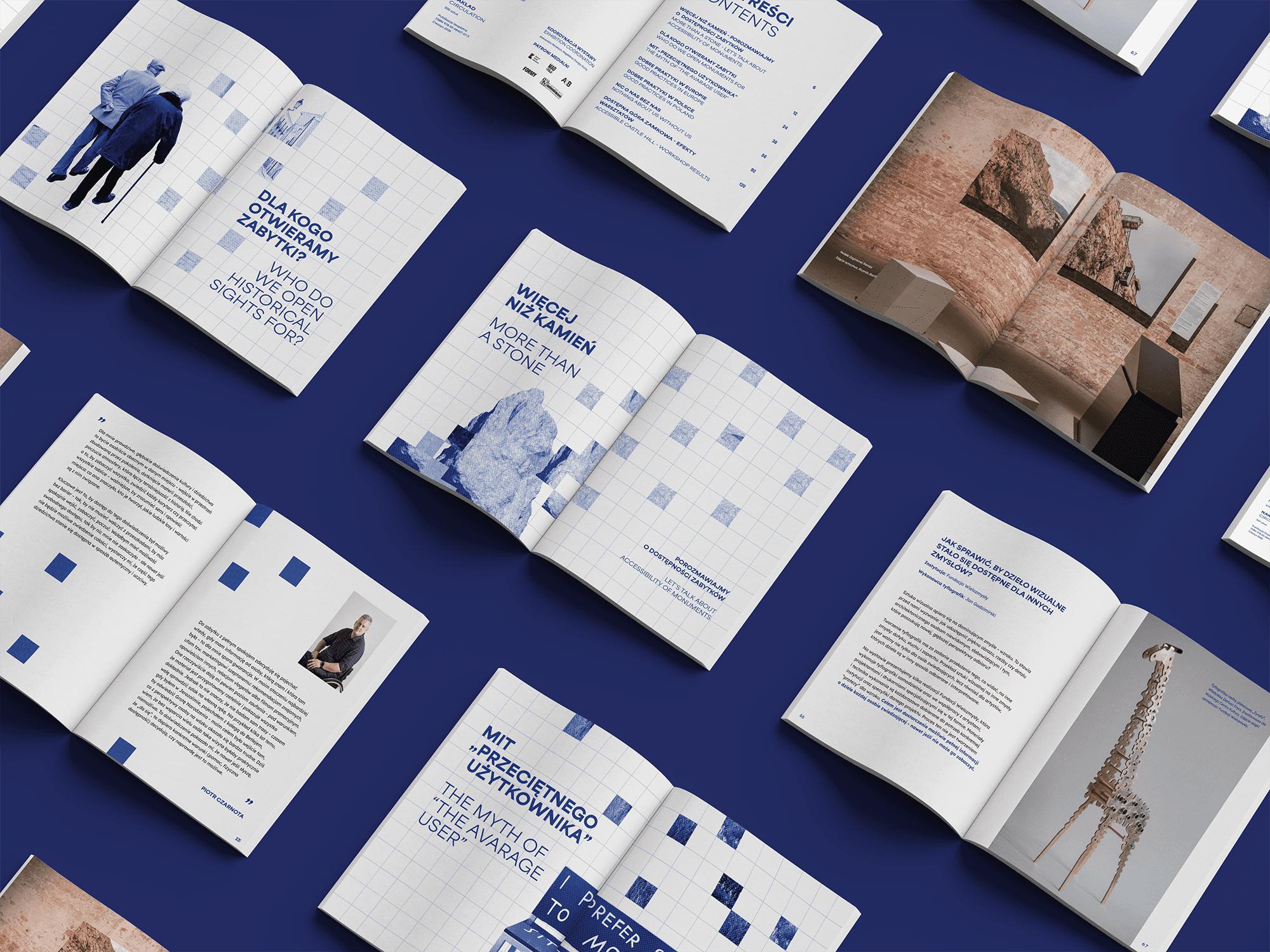 a Stone”, an international exhibition focused on inclusive architecture and accessible exhibition design across Europe and Poland. Created a cohesive identity system expressed through 95 posters and a 140-page catalog, and a complete set of digital marketing assets combining strong editorial structure with clear, engaging visual storytelling.